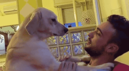 8,不放過(guò)任何一個(gè)可以舔你的機(jī)會(huì),這是狗子表達(dá)愛(ài)的方式之一! 舔舐,確實(shí)是狗狗表達(dá)愛(ài)意的最日常的一種方式,畢竟狗媽媽就是這么教它們的... 它們并不知道自己的口水里都是細(xì)菌,只知道這代表了愛(ài)! 如果你不喜歡被舔,可以用揉頭和撫摸來(lái)反擊,然后讓它爽到都忘記要舔你這件事...